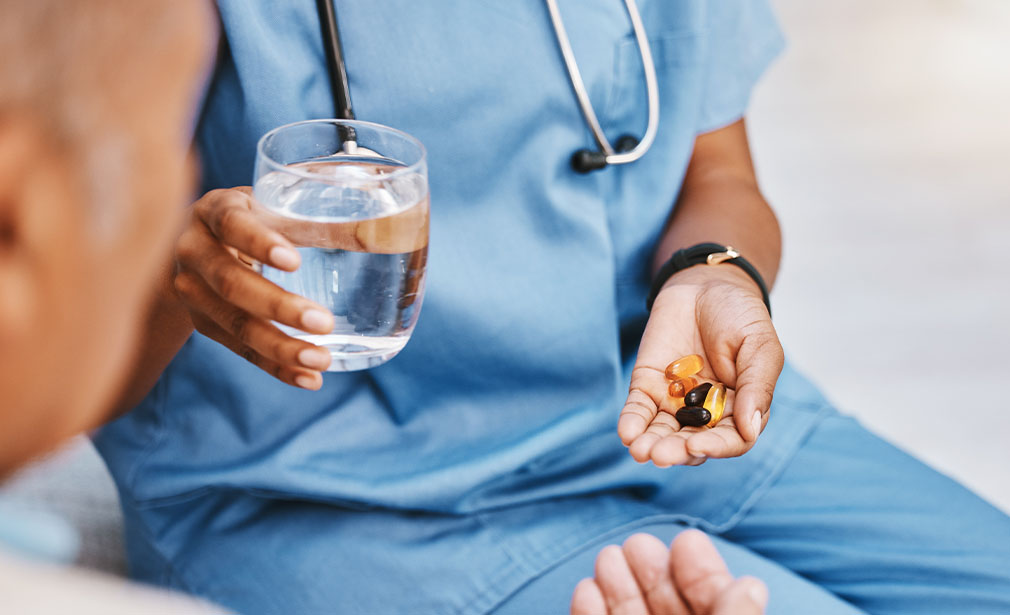 Administración de medicamentos según prescripción médica con horarios exactos.